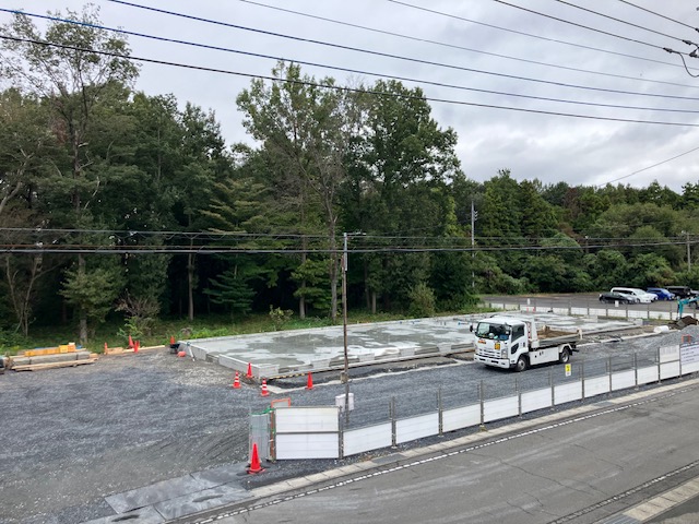 工事が始まる前は砂利の駐車場として利用されているような状態でしたが、9月から本格的な工事が始まり、現在は写真のような状態となっています。着工前には地鎮祭も執り行われ、筑西市の羽黒神社から宮司様をお迎えし、関係業者様および法人内の代表者等が出席しました。