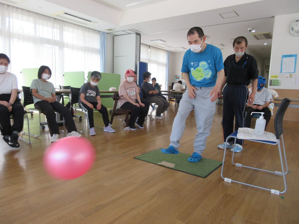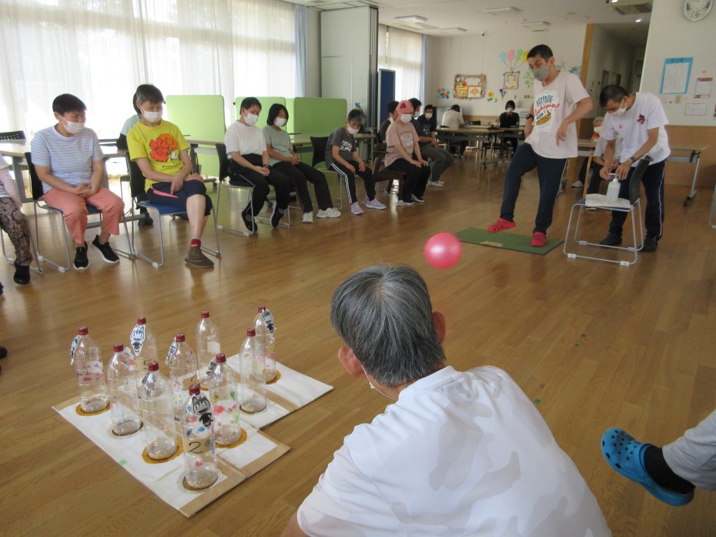 ボールを蹴ってピンを倒す形式でおこない、利用者の皆さんがストライクを狙い、笑顔と歓声が絶えない時間となりました。