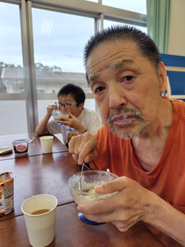 「おいしい」「冷たいよ」とスタッフに話しながら食べており、「またやりたい」という声も聞かれ、楽しい時間を過ごせたようでした。