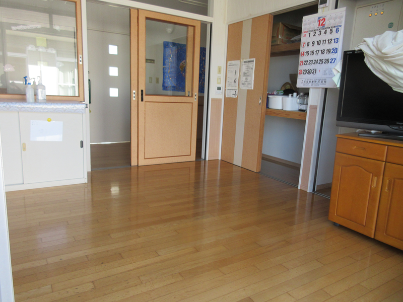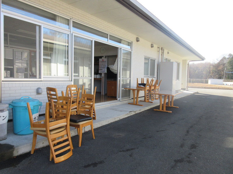 食堂の机や椅子を出して、床をきれいに掃除してからワックスがけしました。