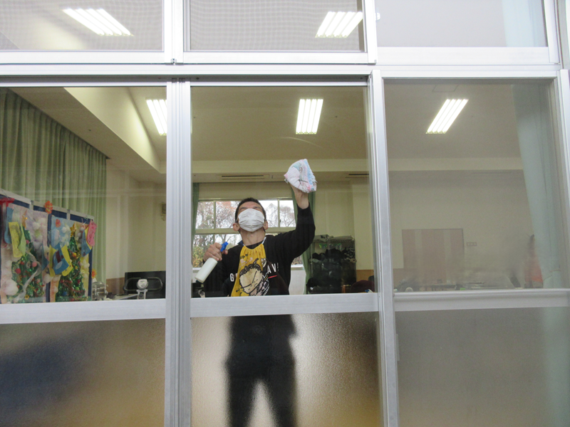 令和7年12月19日、利用者さんが協力して年末の大掃除を行いました。
