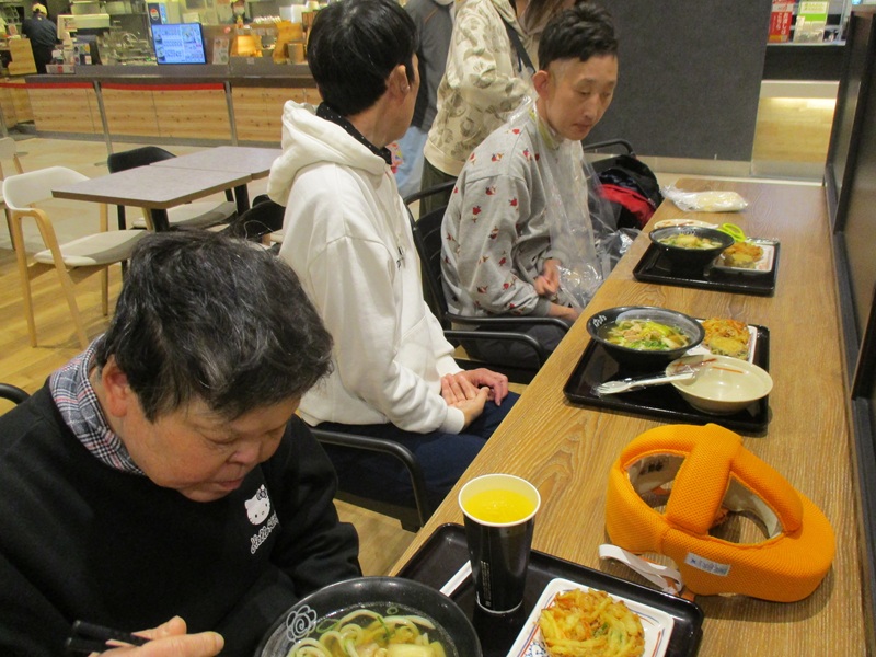 まずは昼食とトイレ休憩の為土浦イオンに寄りました。フードコートで好きなものをたくさん食べ皆さん満足そうな様子でした。