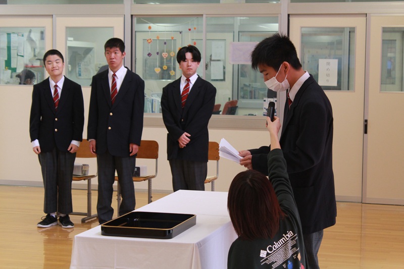先月23日に児童棟職員と在園生、卒園生がホールに集まり式が始まりました。